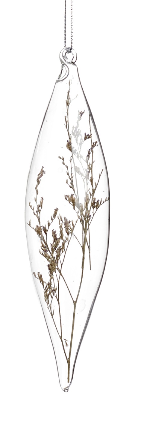 Сосулька стеклянная с сушеными растениями внутри 16 см